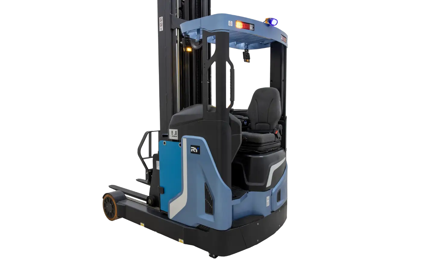Узкий корпус ричтрака позволяет более эффективно маневрировать в складском пространстве, а широкая и энергономичная кабина оператора обеспечивает комфортную и контролируемую работу.