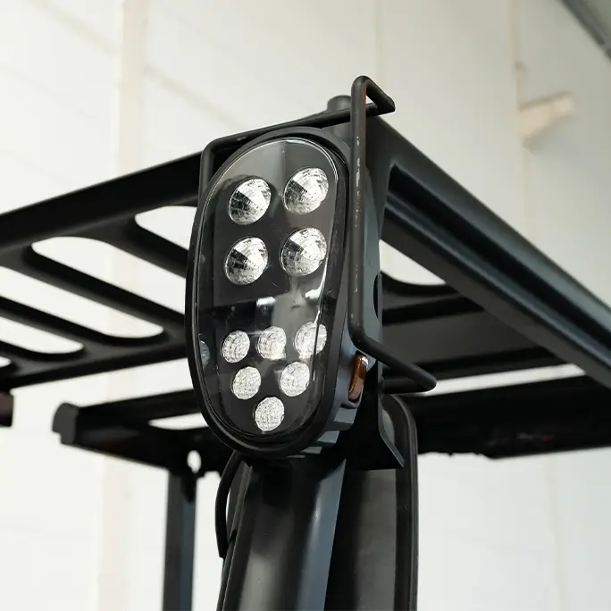 Встроенный сайдшифтер, маркерный фонарь, сигнализация, предупреждающий сигнал заднего хода, ограждение груза, правое-левое зеркала являются оборудованием в стандартной комплектации погрузчика. Широкий функционал повышает производительность и обеспечивает удобство использования.