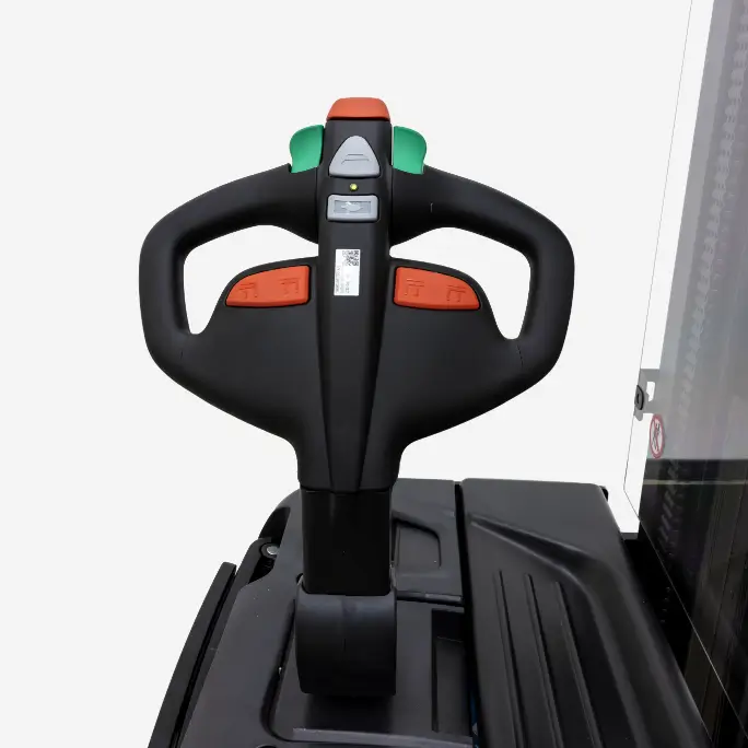 Узкий корпус устройства позволяет более эффективно использовать пространство склада, а с длинным рычагом управления оператор всегда находится на безопасном расстоянии от груза.