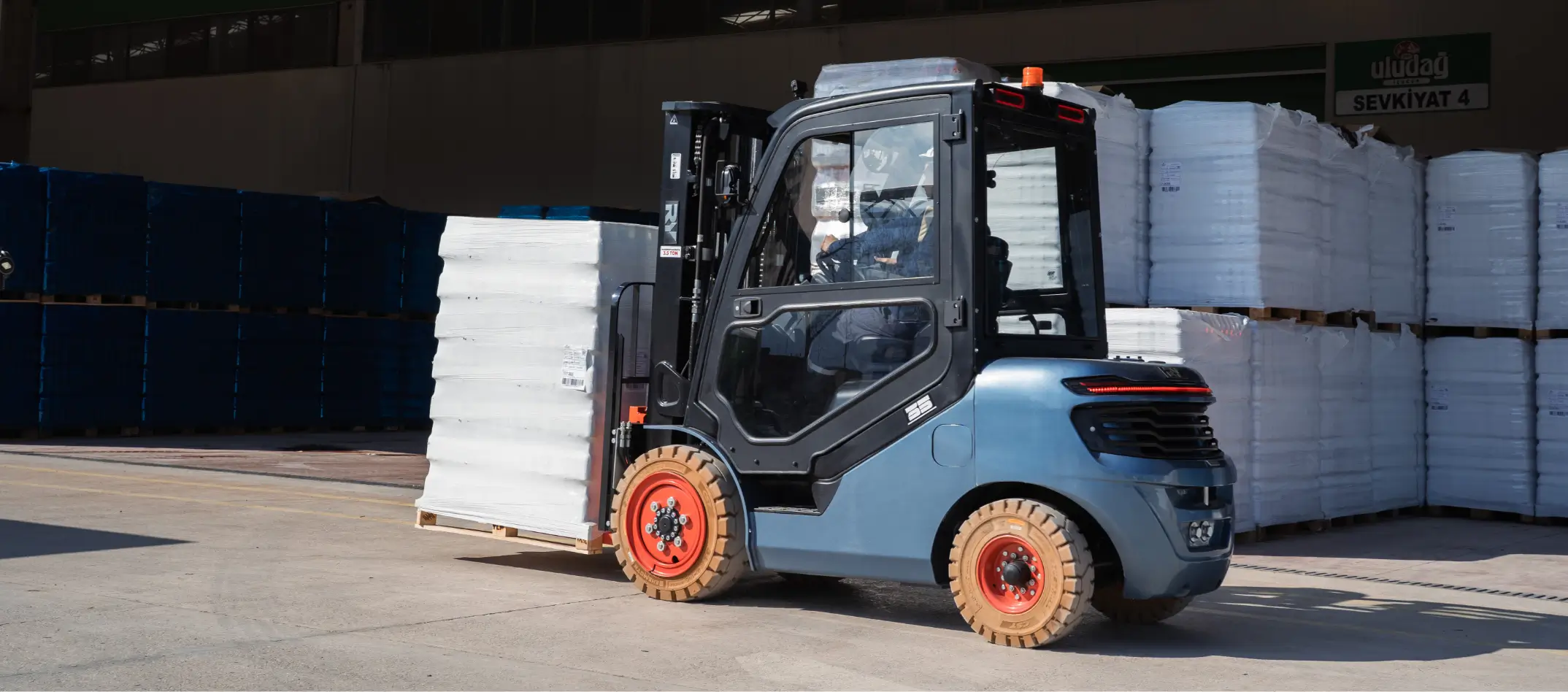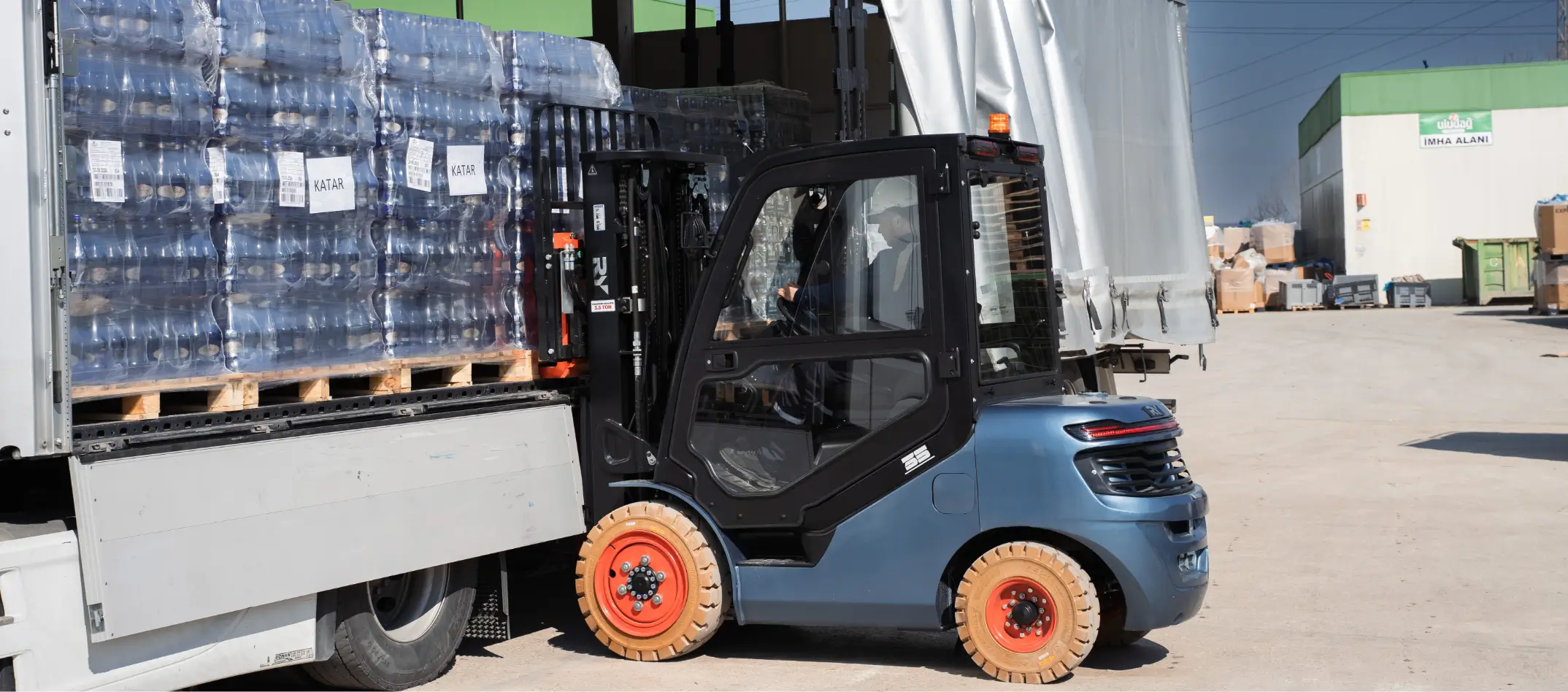 [ Görsel Alanı – Meyve işleme tesisinde forklift ]