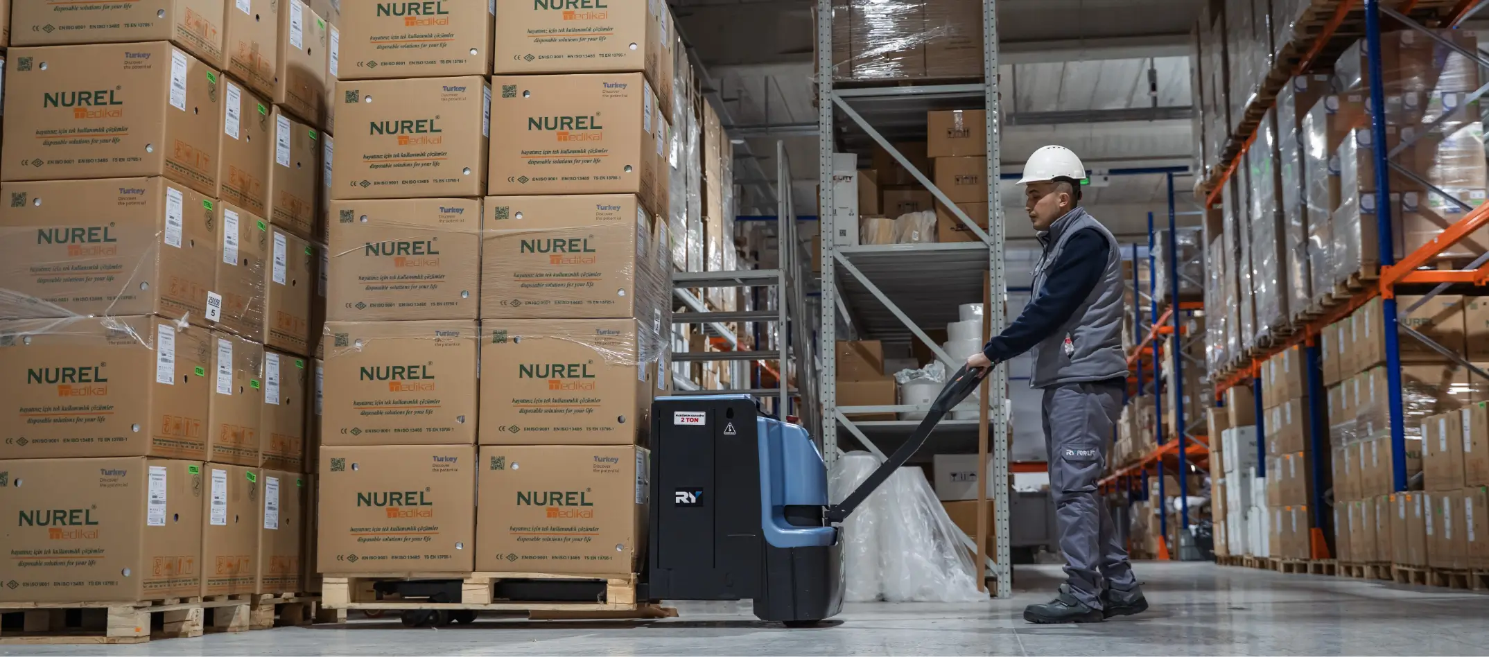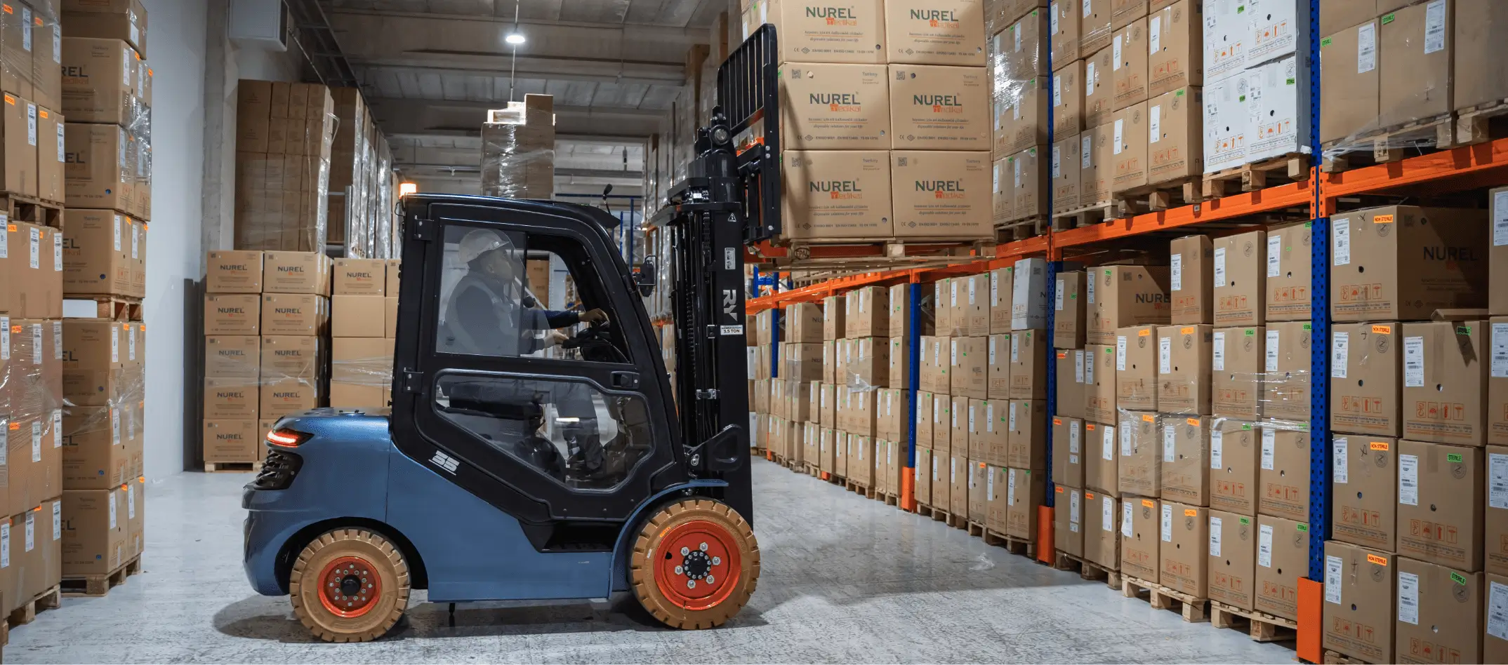 [ Görsel Alanı – İlaç deposunda forklift ]